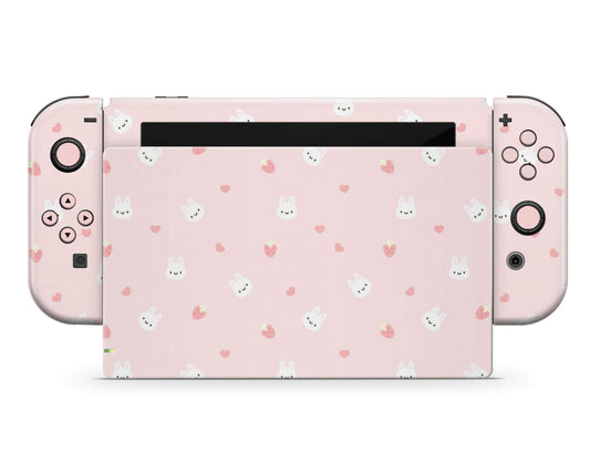 Cute Bunny Rabbit Strawberry Nintendo Switch Skin