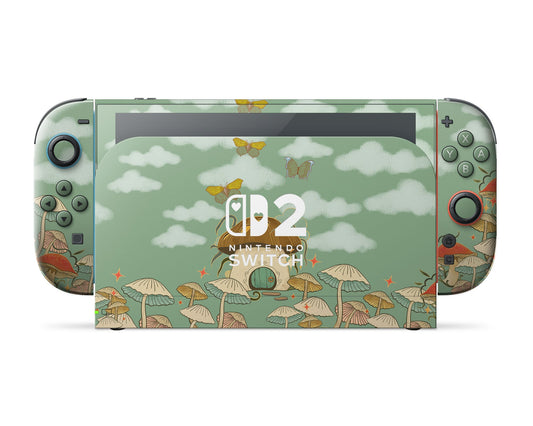Sage Cottagecore Mushroom House Nintendo Switch 2 Skin